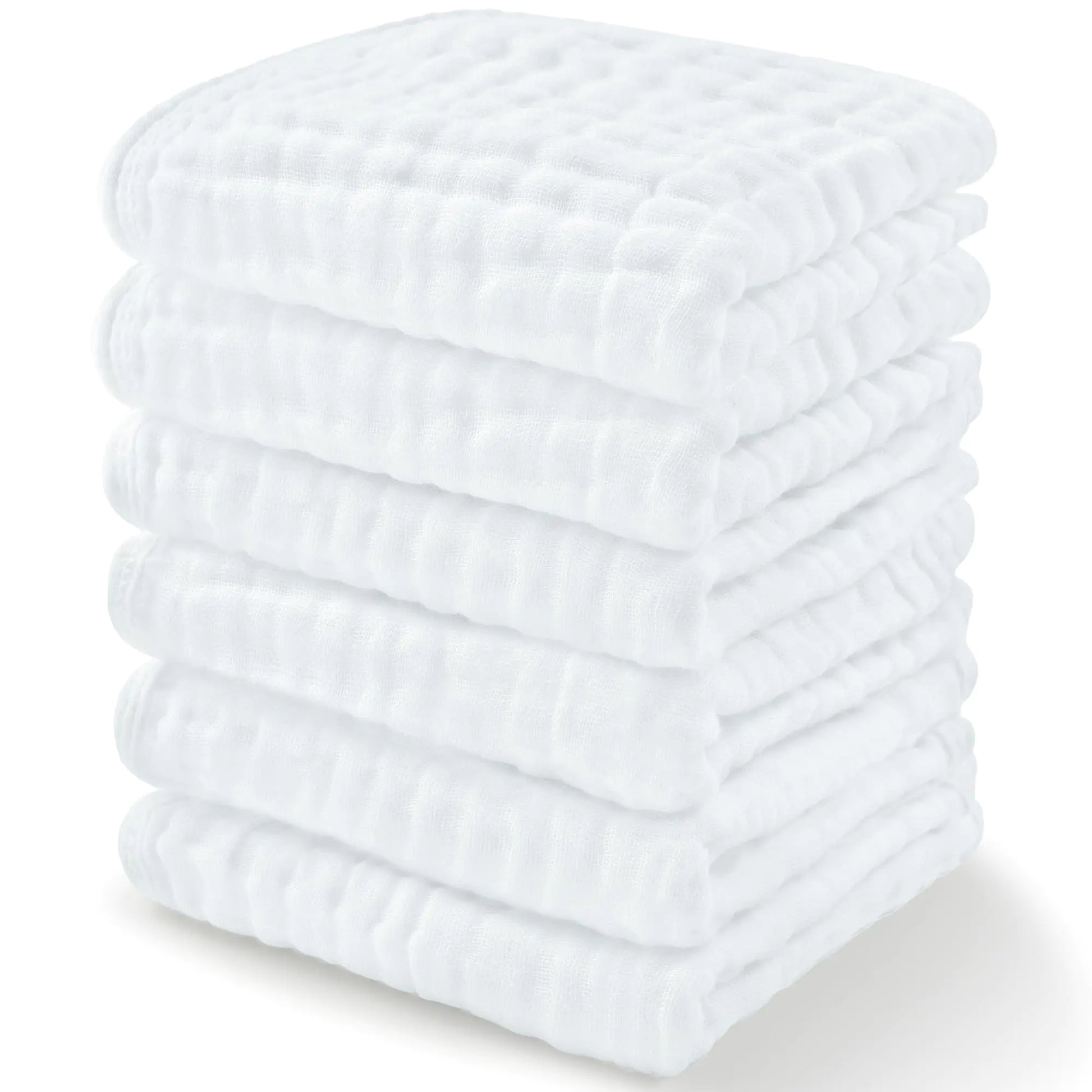 6-Pack Muslin Cotton Baby Washcloths & Towels – Soft, Absorbent, 10"x10", White