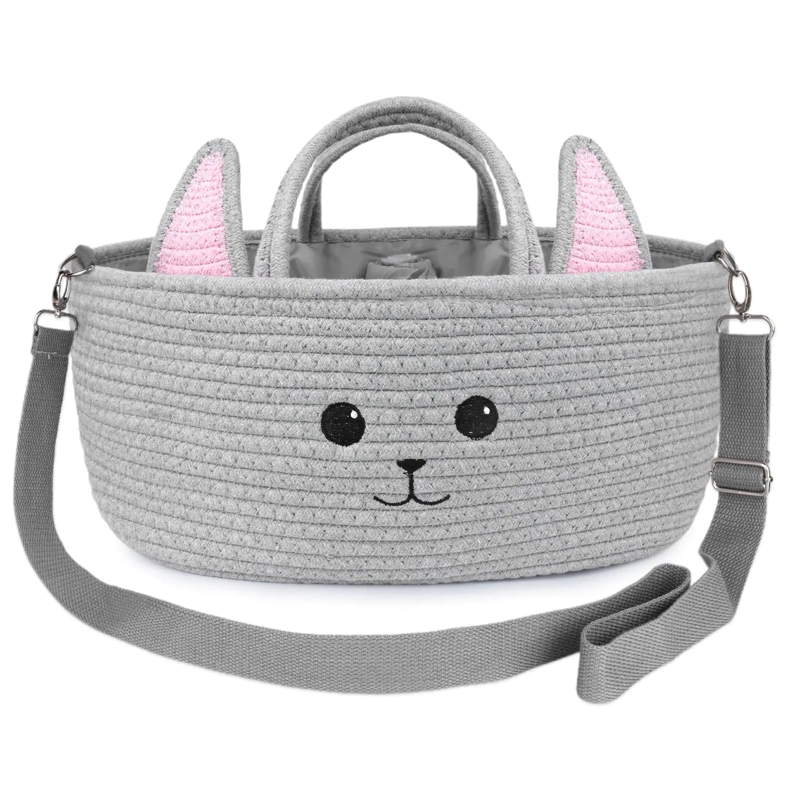 Introducing the LSYDCARM Baby Diaper Caddy Organizer: an essential for smart, stylish parents. Crafted from cotton rope with an adorable cat design, this nursery storage basket offers both function and charm.