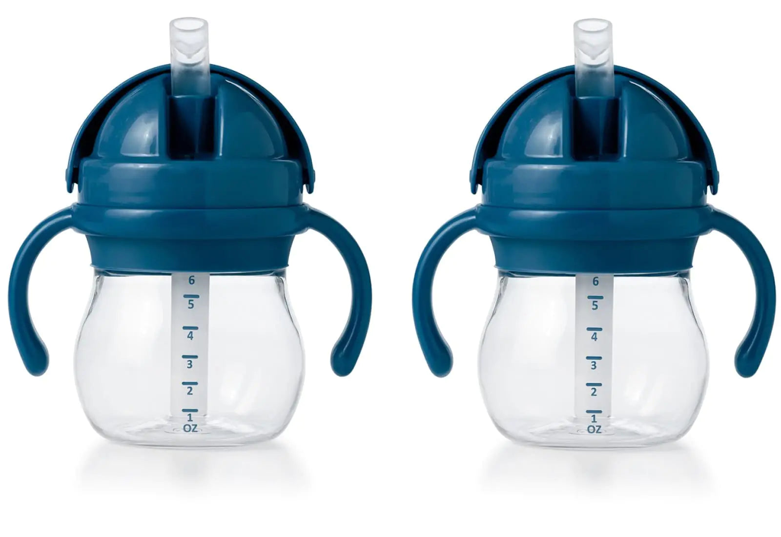 Experience fewer spills and happy sipping with the OXO Tot Transitions Straw Cup With Handles. Designed for little hands, this 6 oz navy-colored cup features easy-to-hold handles and a unique almond-shaped, spill-proof straw that conforms to your tot's mouth.👶