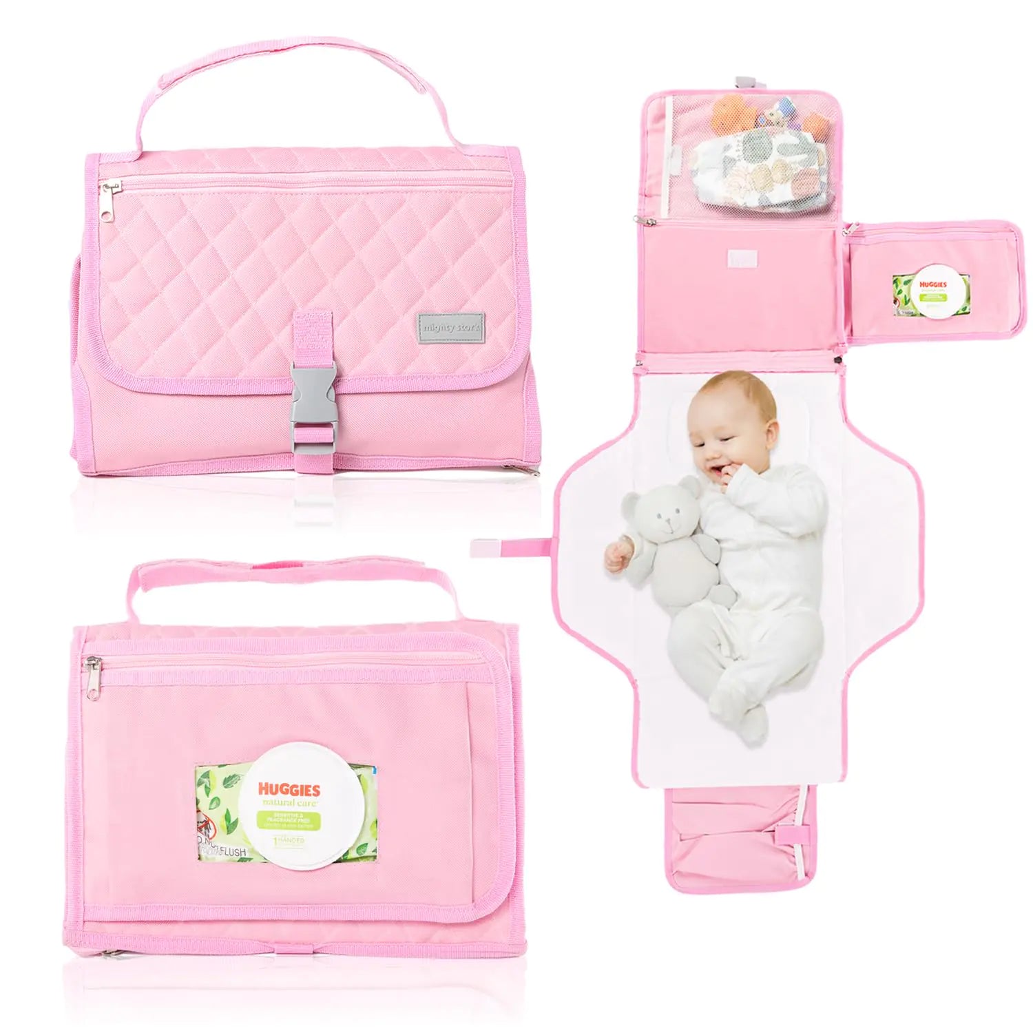 Mighty Stork Diaper Changing Pads - Pink: Upgrade your baby’s comfort and your convenience with our portable changing pad. Crafted from premium materials with a luxurious memory foam pillow, your little one's head will rest easy during diaper changes.