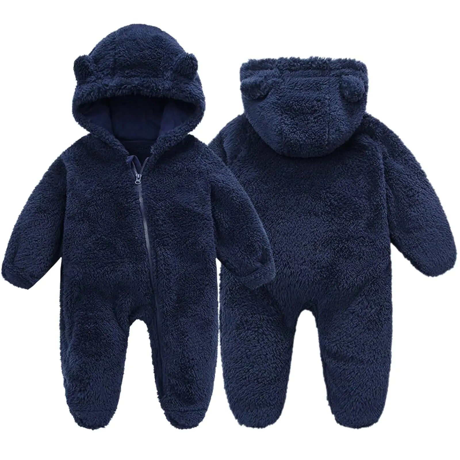 Toddler Bear Fleece Snowsuit Hooded Zip-Up Dark Blue 9M